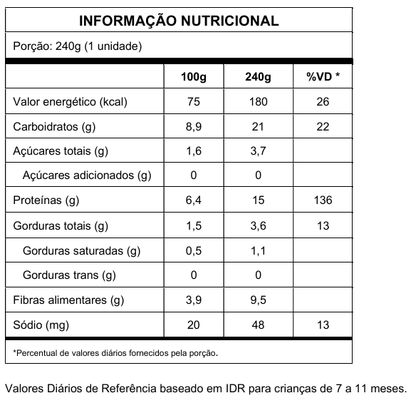 - Praticidade: pronta para consumo após simples descongelamento, facilitando o dia a dia dos pais.