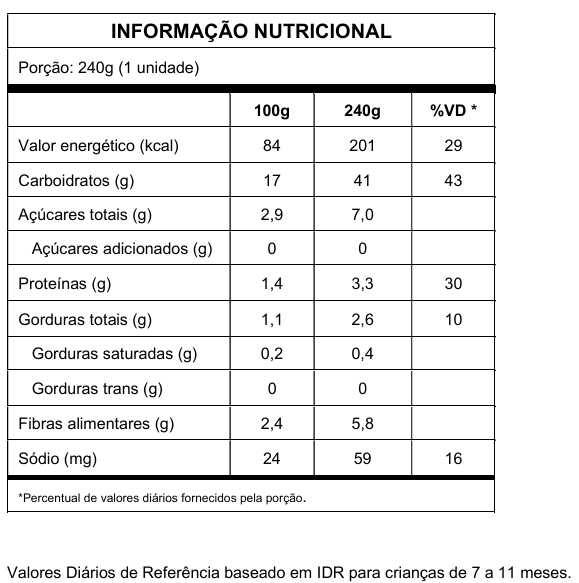 - Praticidade: pronta para consumo após simples descongelamento, facilitando o dia a dia dos pais.