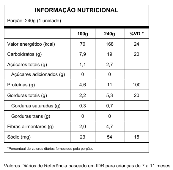 O Ministério da Saúde adverte: Este produto não deve ser usado para crianças menores de 6 meses, a não ser por indicação expressa de médico ou nutricionista. O aleitamento materno evita infecções e alergias e é recomendado até os 2 anos de idade ou mais.