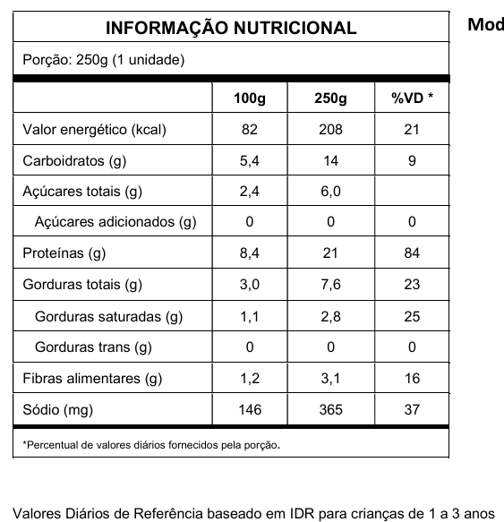 - Praticidade: porção ideal para facilitar a rotina das famílias, garantindo uma refeição completa e nutritiva.