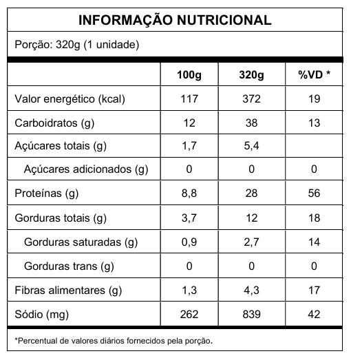 - Porção ideal: 320g de uma refeição completa, prática, saborosa e nutritiva.