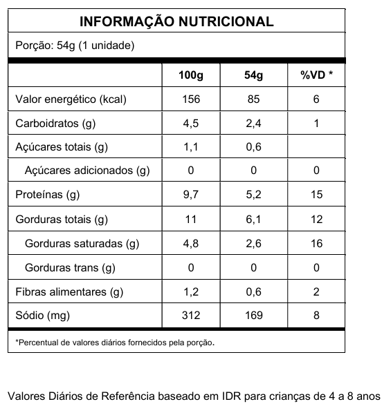 - Praticidade: porção de 4 unidades que podem ser descongeladas uma a uma, facilitando o consumo na medida certa.