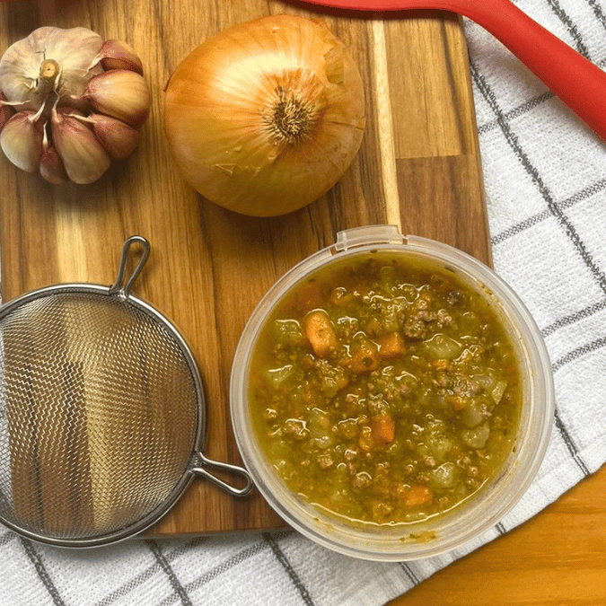 - 2.1 Mandioquinha, Cenoura, Chuchu, Músculo Bovino Moído e Espinafre (2 unidades)